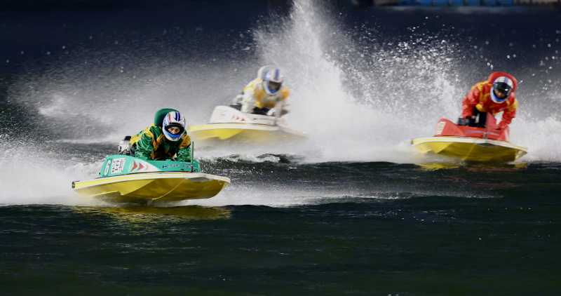 2025 그랑프리 경정 결승전에 진출한 선수들이 플라잉스타트로 경주를 시작하고 있다. 사진=국민체육진흥공단 경주 초반 1턴에서는 1코스 박원규가 근소하게 우위를 지켰지만, 주도권 싸움을 벌인 2코스 김완석은 바깥쪽으로 밀려났다. 그 틈을 파고든 3코스 박종덕과 6코스 김도휘가 뒤를 바짝 추격했다.
