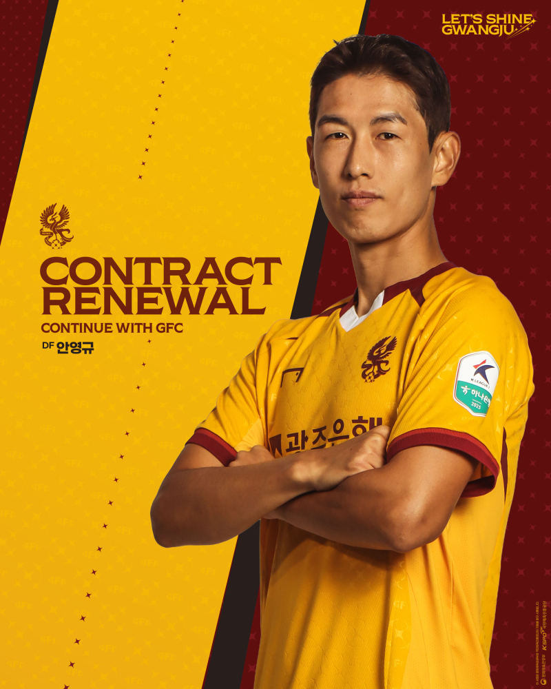 안영규는 “광주에서 다시 한번 새로운 목표를 향해 나아갈 기회를 얻게 돼 매우 기쁘다”며 “그동안 많은 응원을 보내주신 팬 여러분께 경기력과 헌신으로 보답하겠다”고 소감을 밝혔다.