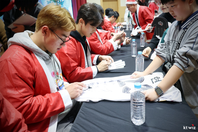 이날 행사엔 허경민을 비롯해 오원석, 소형준, 안현민 등 선수단이 동참했다. 산타로 변신한 선수단은 수원특례시청에서 팬 사인회를 진행한 후 팔달구 소재 이주배경 청소년 전문 복지시설인 글로벌 청소년 드림센터를 방문해 어린이들에게 가보정 도시락 등 크리스마스 선물을 전달하고 기념 촬영을 진행하며 뜻깊은 추억을 선사했다.