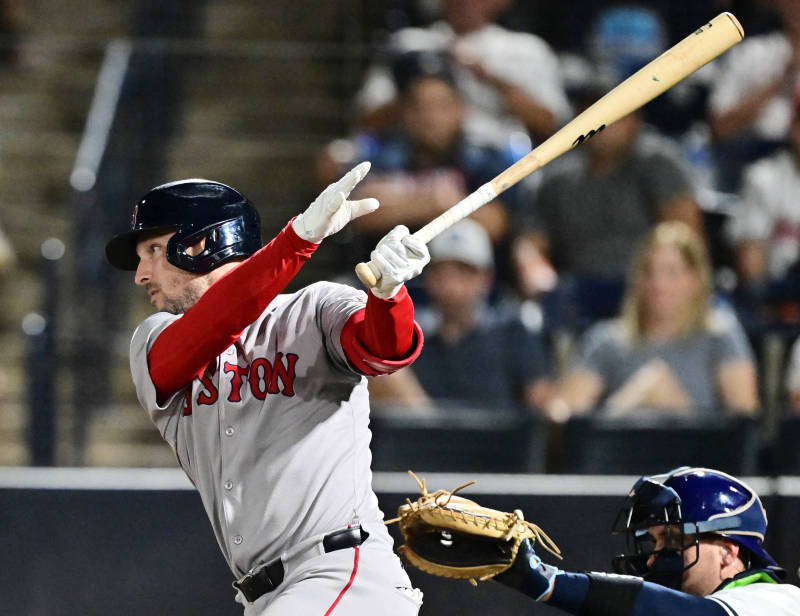 TAMPA, FLORIDA - SEPTEMBER 21: Alex Bregman #2 of the Boston Red Sox hits an RBI single in the seventh inning against the Tampa Bay Rays at George M. Steinbrenner Field on September 21, 2025 in Tampa, Florida. Julio Aguilar/Getty Images/AFP (Photo by Julio Aguilar / GETTY IMAGES NORTH AMERICA / Getty Images via AFP)/2025-09-22 12:31:32/ <저작권자 ⓒ 1980~2025 ㈜연합뉴스. 무단 전재 재배포 금지, AI 학습 및 활용 금지>