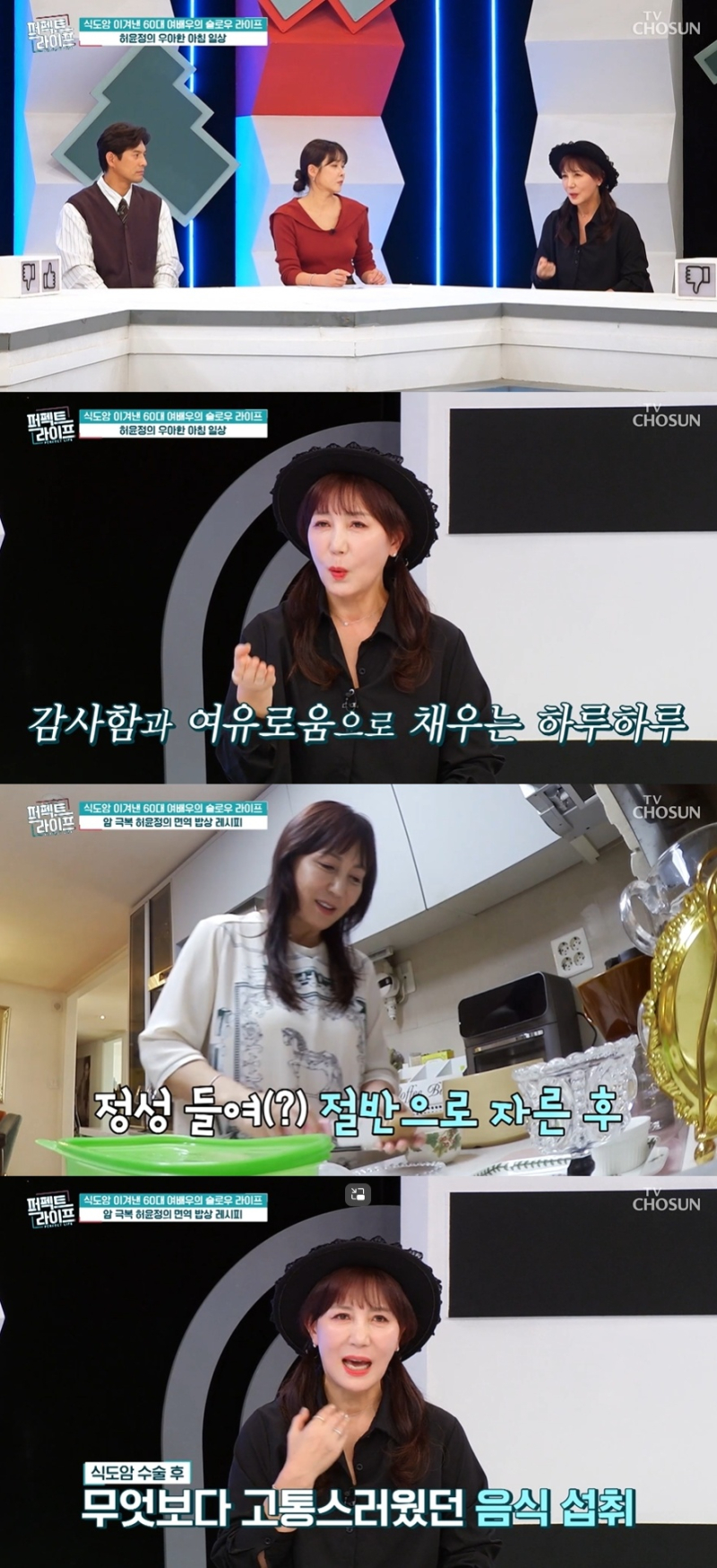 24일 방송된 TV조선 예능 프로그램 ‘퍼펙트 라이프’에 출연한 허윤정은 “2020년 식도암 진단을 받았다”며 “식도를 약 24cm 절제하는 큰 수술을 했다”고 고백했다. 그는 “음식을 먹을 때 목 오른쪽이 따끔거리는 느낌이 계속돼 정밀 검사를 받았고, 그 과정에서 암 진단을 받게 됐다”고 밝혔다.