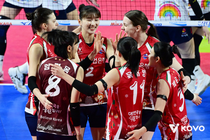최하위 정관장은 4연패에 빠지며 최하위에 머물렀다. 아시아쿼터 인쿠시는 V리그 데뷔 후 3번째 경기에서 8득점, 공격성공률 46.67%를 기록했다. 한 자릿수에 머물렀던 앞선 두 경기보단 높았지만 이날 리시브 성공률은 23.81%에 그쳤다.