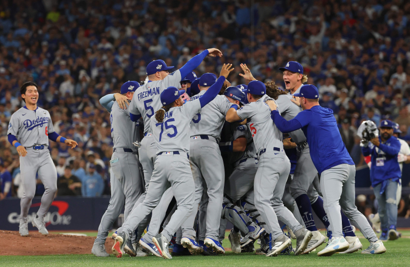 월드시리즈 우승을 확정하고 기쁨을 나누고 있는 다저스 선수들. Gregory Shamus/Getty Images/AFP (Photo by Gregory Shamus / GETTY IMAGES NORTH AMERICA / Getty Images via AFP)/2025-11-02 13:36:28/ <저작권자 ⓒ 1980~2025 ㈜연합뉴스. 무단 전재 재배포 금지, AI 학습 및 활용 금지> 2025 메이저리그(MLB) 월드시리즈가 끝내기 '명장면' 1~3위를 독식했다.