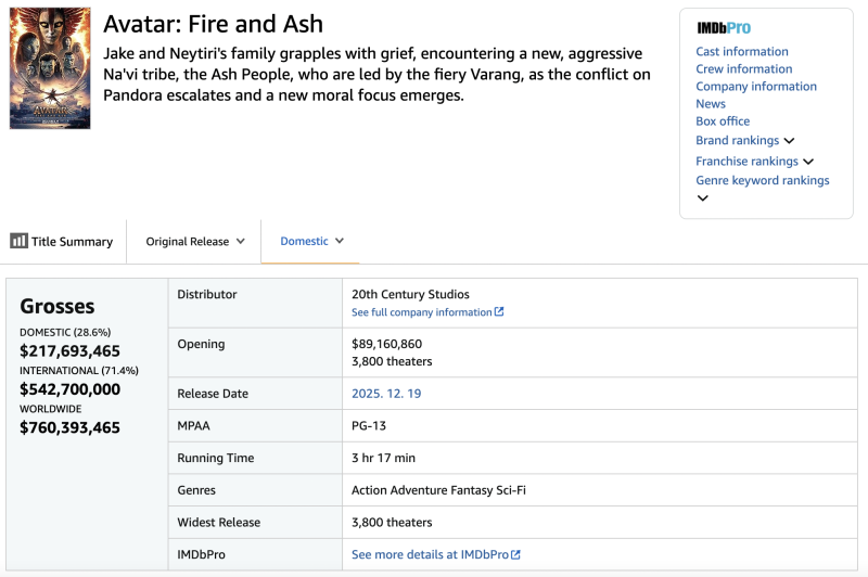 ‘아바타: 불과 재’가 글로벌 박스 오피스를 휩쓸고 있다.