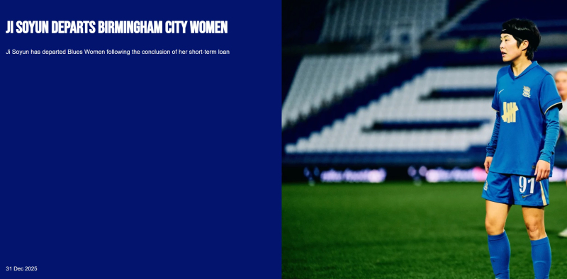 버밍엄, 지소연과 단기 임대 종료…WK리그 복귀 전망