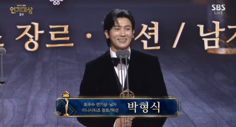 31일 서울 마포구 상암동 SBS 프리즘타워에서는 ‘2025 SBS 연기대상’이 개최됐다. 이날 박형식이 ‘보물섬’으로 미미니시리즈 장르·액션 부문 최우수연기상 트로피를 품에 안았다.