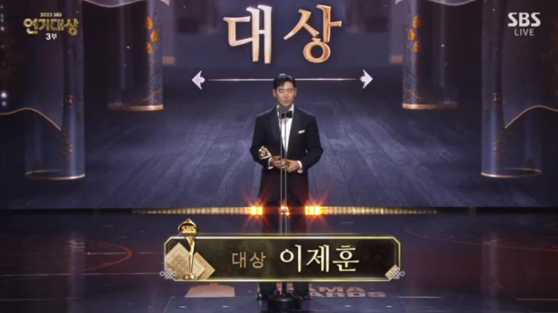 사진출처=‘2025 SBS 연기대상’ 방송 캡처 배우 이제훈이 ‘2025 SBS 연기대상’에서 대상의 영예를 안았다.