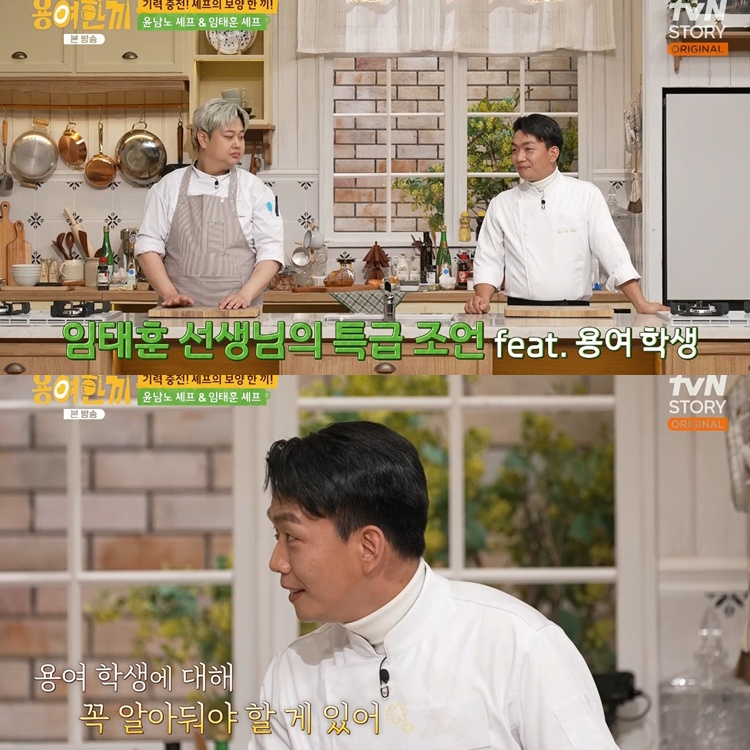 1일 방송된 tvN 스토리 ‘용여한끼’에서는 윤남노 셰프와 임태훈 셰프가 출연해 MC 선우용여, 유세윤과 함께 요리 수업을 진행했다.