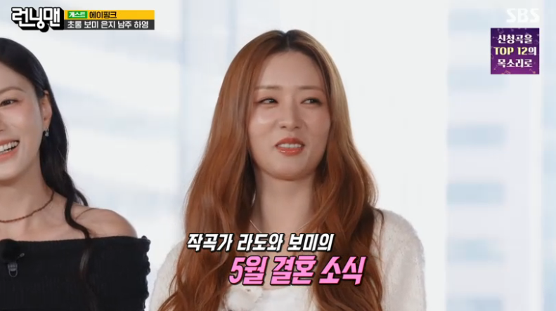 이날 에이핑크 멤버들이 컴백 곡 ‘러브 미 모어’ 무대를 꾸미며 박수 속 등장했다. 근황을 나누며 유재석은 “보미는 이제 결혼하지 않냐”고 물었다.