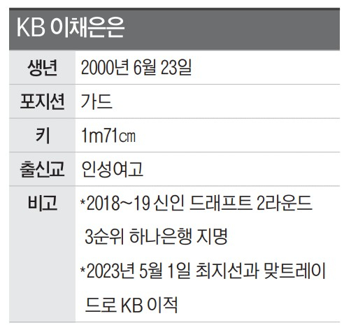 가드 이채은(26·청주 KB)이 팀의 새로운 엔진으로 자리매김하고 있다. 눈에 띄게 향상된 3점슛 능력을 앞세워 커리어 하이 시즌을 써 내려가는 중이다.