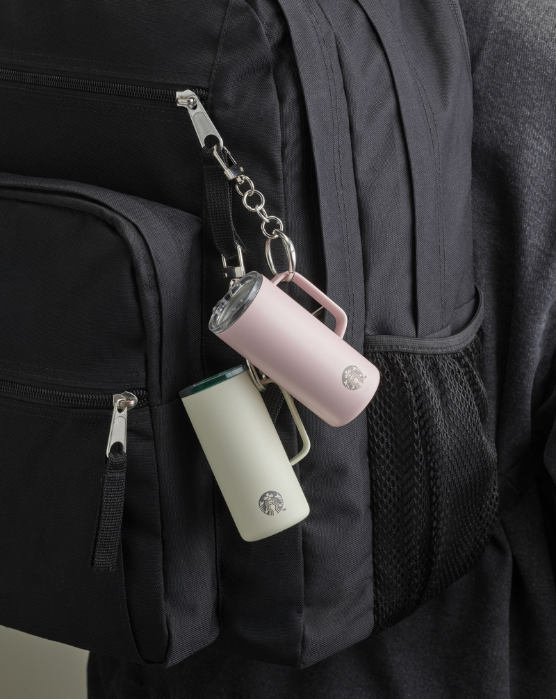 ‘미니어처 텀블러 키링’은 스타벅스 텀블러 중 인기 모델로 손꼽히는 탱크 텀블러의 미니 버전으로, 귀여움에 실용성으로 눈길을 끈다. 어디에든 어울리는 색상의 ‘시그니처 미니어처 텀블러 키링’과 사랑스러운 느낌의 ‘핑크 미니어처 텀블러 키링’ 두 가지 디자인으로 구성됐다. 이어폰·립밤·핸드크림 등 데일리 아이템을 보관하기에도 좋다.