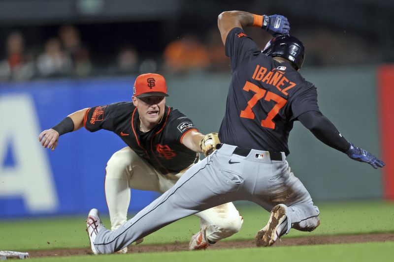 San Francisco Giants' Tyler Fitzgerald tags out Detroit Tigers' Andy Ibanez out a sixth inning steal attempt during a baseball game at Oracle Park in San Francisco on Monday, March 24, 2025. (Scott Strazzante/San Francisco Chronicle via AP) MANDATORY CREDIT: PHOTOGRAPHER AND SAN FRANCISCO CHRONICLE; SAN JOSE MERCURY NEWS OUT; EAST BAY TIMES OUT; MARIN INDEPENDENT JOURNAL OUT; SAN FRANCISCO EXAMINER OUT/2025-03-25 13:29:01/ <저작권자 ⓒ 1980~2025 ㈜연합뉴스. 무단 전재 재배포 금지, AI 학습 및 활용 금지>