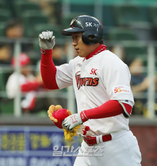 2023 KBO 프로야구 SSG 랜더스와 삼성 라이온즈의 경기가 31일 오후 인천SSG랜더스필드에서 열렸다. 7회초 무사 김동엽이 솔로홈런을 치고 박수를 치며 1루로 달려나가고 있다. 인천=김민규 기자 /2023.05.31/