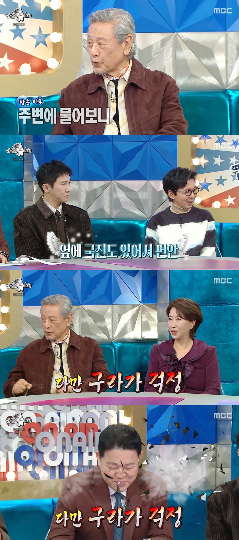 박근형은 “지난번 ‘라디오스타’ 출연 당시 예능에 소질이 없어 걱정이 많았다”며 “그런데 주변에서 생각보다 잘했다고 칭찬해줘서 안심했다”고 말했다. 이어 “다만 김구라 씨가 좀 걱정이었는데, 다행히 많이 부드러워졌다고 하더라”며 웃음을 보였다.