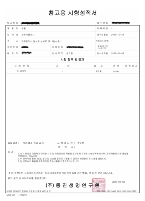 삼화식품에 따르면, 이번 3-mcpd 성분 조사는 분석업체인 한국식품과학연구원과 동진생명연구원에서 진행됐다. 하지만 두 업체에서는 해당 간장에 대한 3-mcpd 성분의 검출 결과가 다르게 나오면서 문제가 발생했다.