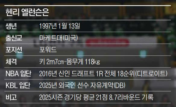 외국인 선수 헨리 엘런슨(29·원주 DB)의 득점포가 다시 불을 뿜고 있다.