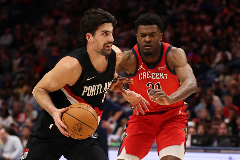NEW ORLEANS, LOUISIANA - JANUARY 02: Deni Avdija #8 of the Portland Trail Blazers drives the ball against Yves Missi #21 of the New Orleans Pelicans at Smoothie King Center on January 02, 2026 in New Orleans, Louisiana. NOTE TO USER: User expressly acknowledges and agrees that, by downloading and or using this photograph, User is consenting to the terms and conditions of the Getty Images License Agreement. Chris Graythen/Getty Images/AFP (Photo by Chris Graythen / GETTY IMAGES NORTH AMERICA / Getty Images via AFP)/2026-01-03 11:41:08/ <저작권자 ⓒ 1980~2026 ㈜연합뉴스. 무단 전재 재배포 금지, AI 학습 및 활용 금지>