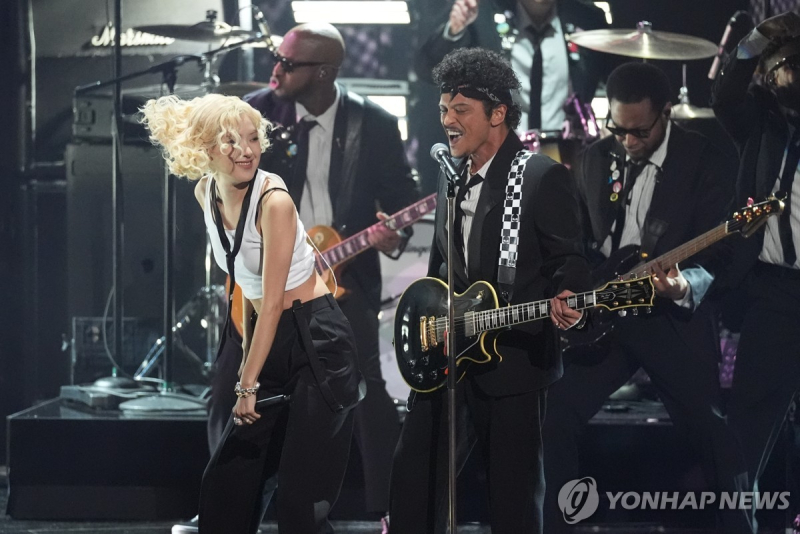 로제는 밴드셋 무대 위에서 자유분방한 퍼포먼스로 현장을 달궜다. 브루로 마스와 얼굴을 맞대고 다정한 제스처를 취하는가 하면, 그의 기타 리프에 맞춰 몸을 흔드는 등 경쾌한 모습으로 여유를 보였다.