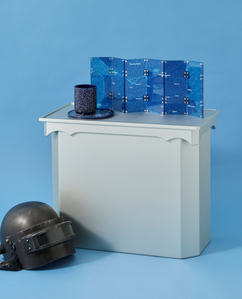 슈퍼포지션은 '배틀그라운드'의 상징적인 공간인 '블루존'을 한국 전통 자개에서 착안한 '디지털 자개' 개념으로 재해석했다. 블루존을 병풍이라는 전통 오브제로 구현해 디지털 세계의 이미지를 오프라인 예술 작품으로 시각화했다. 주요 상품은 '펍지 블루존 병풍'과 '블루존 오브젝트 컵·접시 세트'다.