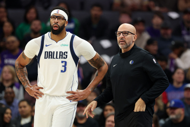 SACRAMENTO, CALIFORNIA - JANUARY 06: Head coach Jason Kidd of the Dallas Mavericks talks to Anthony Davis #3 during their game against the Sacramento Kings at Golden 1 Center on January 06, 2026 in Sacramento, California. NOTE TO USER: User expressly acknowledges and agrees that, by downloading and/or using this photograph, user is consenting to the terms and conditions of the Getty Images License Agreement. Ezra Shaw/Getty Images/AFP (Photo by EZRA SHAW / GETTY IMAGES NORTH AMERICA / Getty Images via AFP)/2026-01-07 14:26:05/ <저작권자 ⓒ 1980~2026 ㈜연합뉴스. 무단 전재 재배포 금지, AI 학습 및 활용 금지>