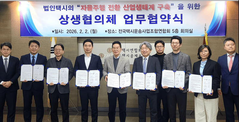 이번 협약은 급변하는 자율주행 환경에 대응해 택시산업의 지속 가능한 발전을 도모하기 위해 마련됐다. 참여 기관들은 국내 기술과 인프라를 바탕으로 ‘택시면허 기반의 자율주행 생태계’를 조성하고, 제도 개선 및 연구개발 전반에 걸쳐 상호 협력하기로 했다.
