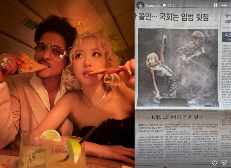 브루노 마스, 韓일간지 1면 공유…로제와 ‘그래미’ 여운 [IS하이컷]