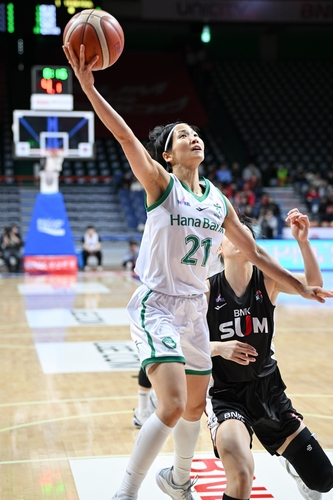 하나은행 이이지마 사키. 여자프로농구 선두 부천 하나은행이 연장 접전 끝에 부산 BNK를 물리쳤다.