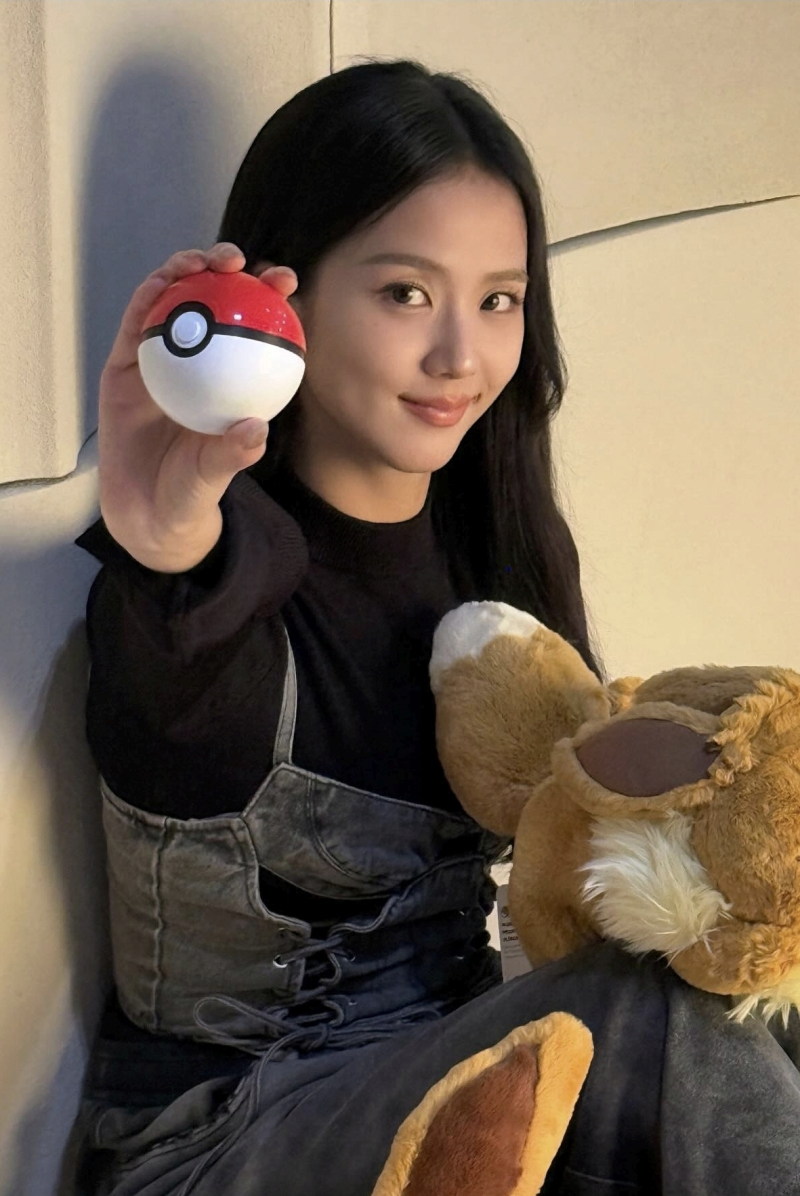 지수는 9일 자신의 SNS에 자신의 ‘최애’ 포켓몬 캐릭터 ‘이브이’와 함께 한 사진을 여러 장 공개했다. 지수는 다양한 포켓몬 캐릭터 키링을 손에 걸고 행복한 미소를 짓고 있다.