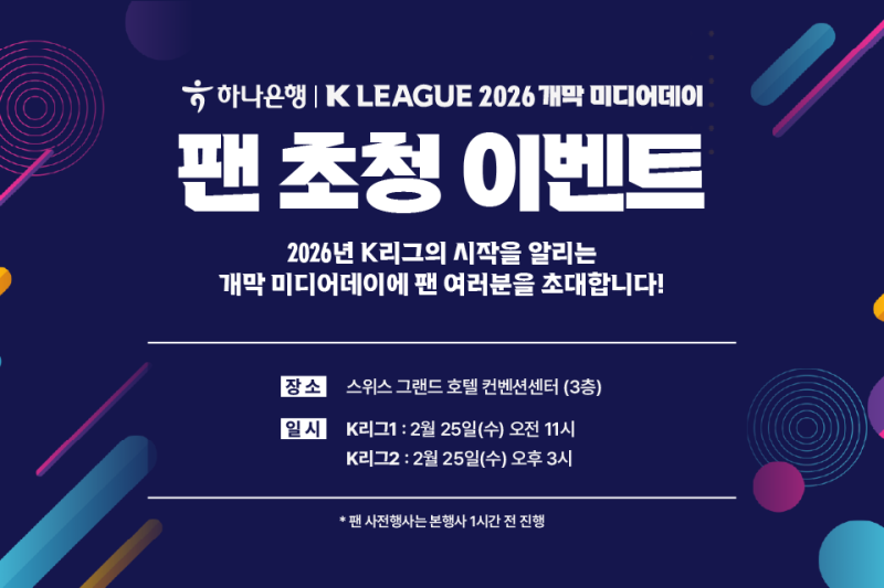 한편 이번 미디어데이에서는 2026시즌 K리그1, K리그2 공식 인트로 영상이 최초 공개된다. 이번 인트로 영상은 생성형 AI 기술을 활용해 K리그만의 역동적인 에너지와 팬들의 열정을 감각적인 비주얼로 구현했다. 이날 공개되는 공식 인트로 영상은 올 시즌 K리그 중계방송 오프닝으로 활용될 예정이다.