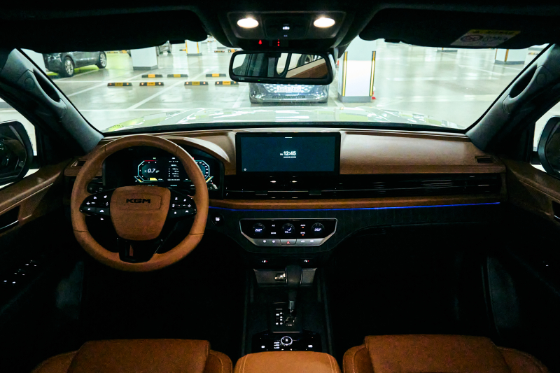 실내는 픽업의 투박함을 벗어던졌다. 12.3인치 디지털 클러스터와 KGM 링크 내비게이션 디스플레이는 아테나 3.0 GUI를 적용해 시인성을 높였고 , 전자식 변속 레버(SBW)와 32가지 컬러의 앰비언트 라이트는 고급 SUV 수준의 실내 분위기를 연출한다. 디젤 2.2 LET 혹은 가솔린 2.0 터보