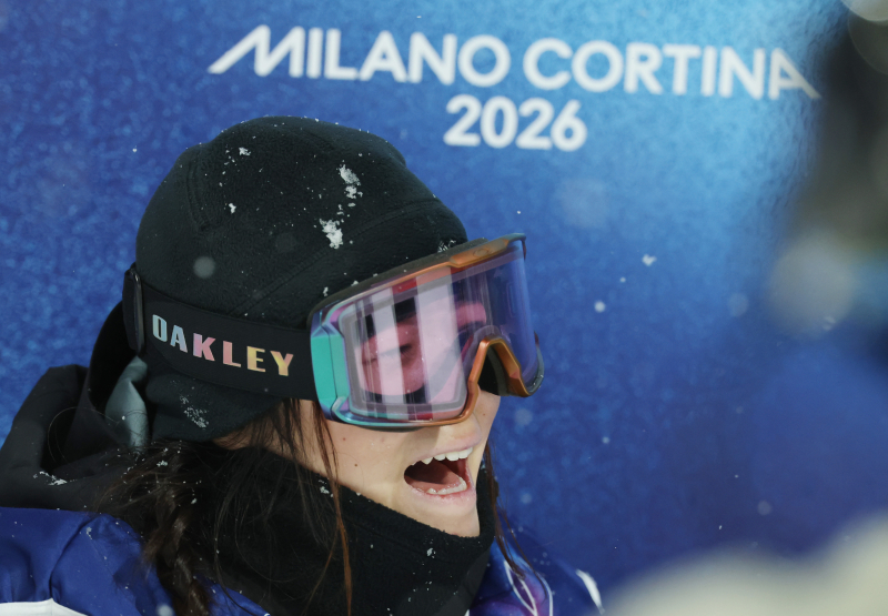 12일(현지시간) 이탈리아 리비뇨 스노파크에서 열린 2026 밀라노·코르티나담페초 동계 올림픽 스키 스노보드 여자 하프파이프 결선에서 90.25점을 획득해 금메달을 획득한 한국 최가온이 환호하고 있다. 2026.2.13 [연합뉴스]