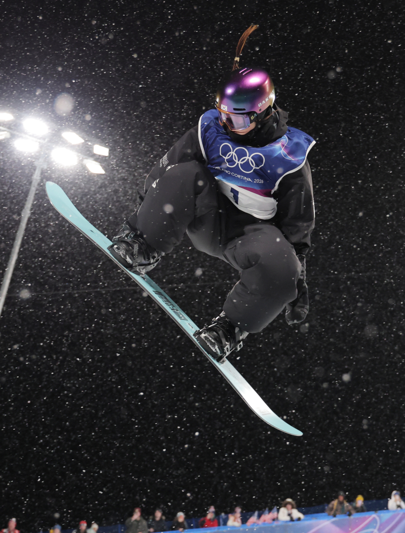 12일(현지시간) 이탈리아 리비뇨 스노파크에서 열린 2026 밀라노·코르티나담페초 동계 올림픽 스키 스노보드 여자 하프파이프 결선에서 90.25점을 획득해 금메달을 획득한 한국 최가온이 연기를 선보이고 있다. 2026.2.13 [연합뉴스]