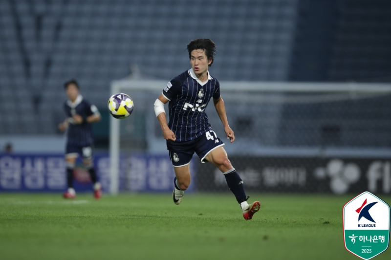 서울 이랜드 이주혁. 사진=프로축구연맹 이주혁은 첫 시즌에 이어 올해도 ‘47번’을 달고 뛴다. 이 번호는 잉글랜드 프리미어리그(EPL) 맨체스터 시티의 필 포든, 강원FC에서 뛰던 양민혁(코번트리 시티)이 사용했다. 그는 “숫자 7을 좋아한다. 양민혁 선수의 좋은 기운을 받으려고 고른 것도 있다”며 웃었다.