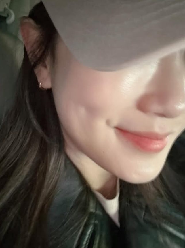 사진 속 김지민은 모자로 눈을 가리고 살짝 미소를 지어 입꼬리를 올린 상태다. 볼 부근에 전에 없던 보조개가 자리잡은 모습이다.