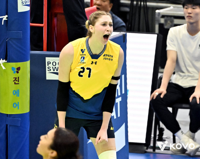 5라운드 마지막 경기에서 기분 좋은 4연승을 달린 2위 현대건설은 승점 56(19승11패)을 기록, 선두 한국도로공사(승점 59)를 바짝 따라붙었다. 현대건설 외국인 선수 카리 가이스버거(등록명 카리)가 개인 한 경기 최다 블로킹 8개를 포함해 27득점을 올렸다. 양효진과 자스티스 야쿠지(등록명 자스티스)도 나란히 17점을 뽑아 팀 승리에 힘을 보탰다.