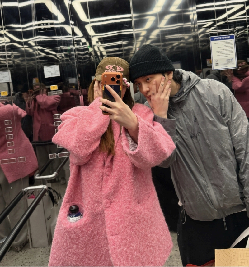 또 다른 사진 중 시선을 모은 건 최근 온라인에서 화제가 된 쇼핑몰 도촬 영상 속 의상인 오버사이즈 핑크 코트를 입고 찍은 사진으로, 당일 쇼핑몰 데이트 도중 찍은 것으로 추측되는 사진이다. 엘리베이터에 비친 현아의 모습은 평범한 오버 사이즈 룩으로 화제가 된 사진만큼 살찐 모습이 전혀 아니다.