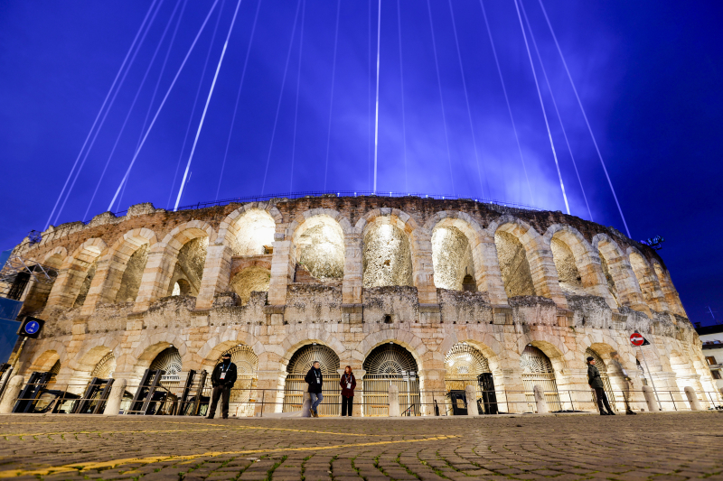 23일 베로나 올림픽 스타디움에서 2026 밀라노-코르티나 동계올림픽 폐회식이 열리고 있다. AFP=연합뉴스