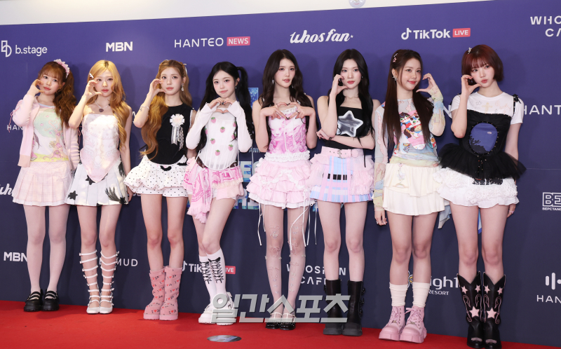 하츠투하츠 카르멘, 지우, 유하, 스텔라, 주은, 에이나, 이안, 예온이 15일 오후 서울 송파구 KSPO돔에서 열린 '33주년 한터뮤직어워즈 2025' 레드카펫 행사에 참석해 포토타임을 갖고 있다. 서병수 기자 qudtn@edaily.co.kr /2026.02.15/