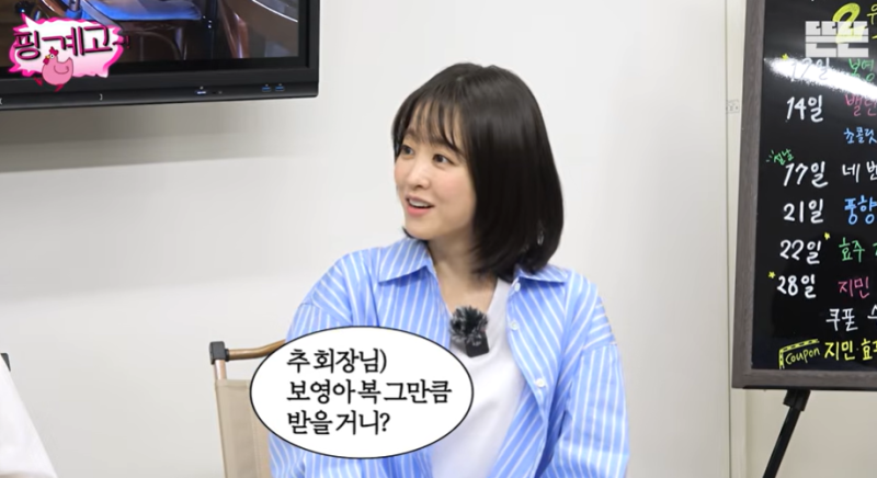 사진=유튜브 영상 캡처 이를 듣던 박보영은 최근 신년회에서 겪었던 일화를 공개했다. 박보영은 “자현 언니가 이거 보면 안될 수도 있는데”라고 머뭇거리면서도 “신년회를 하다가 언니가 좋은 와인을 가지고 왔다. 첫 잔을 건배할 때 언니가 ‘복 받고 싶은 만큼 채우라고 했다’ 그런데 저한테 ‘복 그만큼만 받을 거니?’ 이러셨다”고 전해 모두가 폭소를 터뜨렸다.